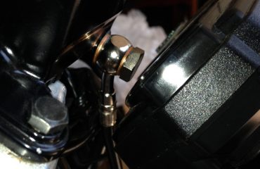 Drill the tank cover on your marks. DO NOT DRILL THE TANK COVER WHILE IT’S ON THE BIKE!!!! The gas tank is directly behind the tank cover, and you have to drill these holes out to 1/2″. I repeat, DO NOT DRILL THE TANK COVER WHILE IT’S ON THE BIKE!!!! Remove the tank cover and drill these two holes out to 1/2″, you will be using the same rubber grommet and steel inserts that you used on the front mounting hole.